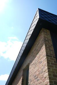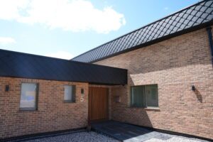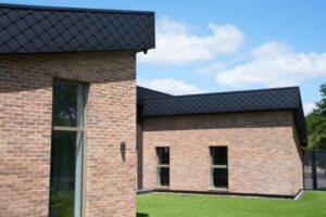 The Wienerberger UK Blend 32 Brick Slips from The Brick Tile Company highlight how smart material choices can elevate timber frame construction. Their textured, earthy finish adds depth and contrasts beautifully with the natural timber.
