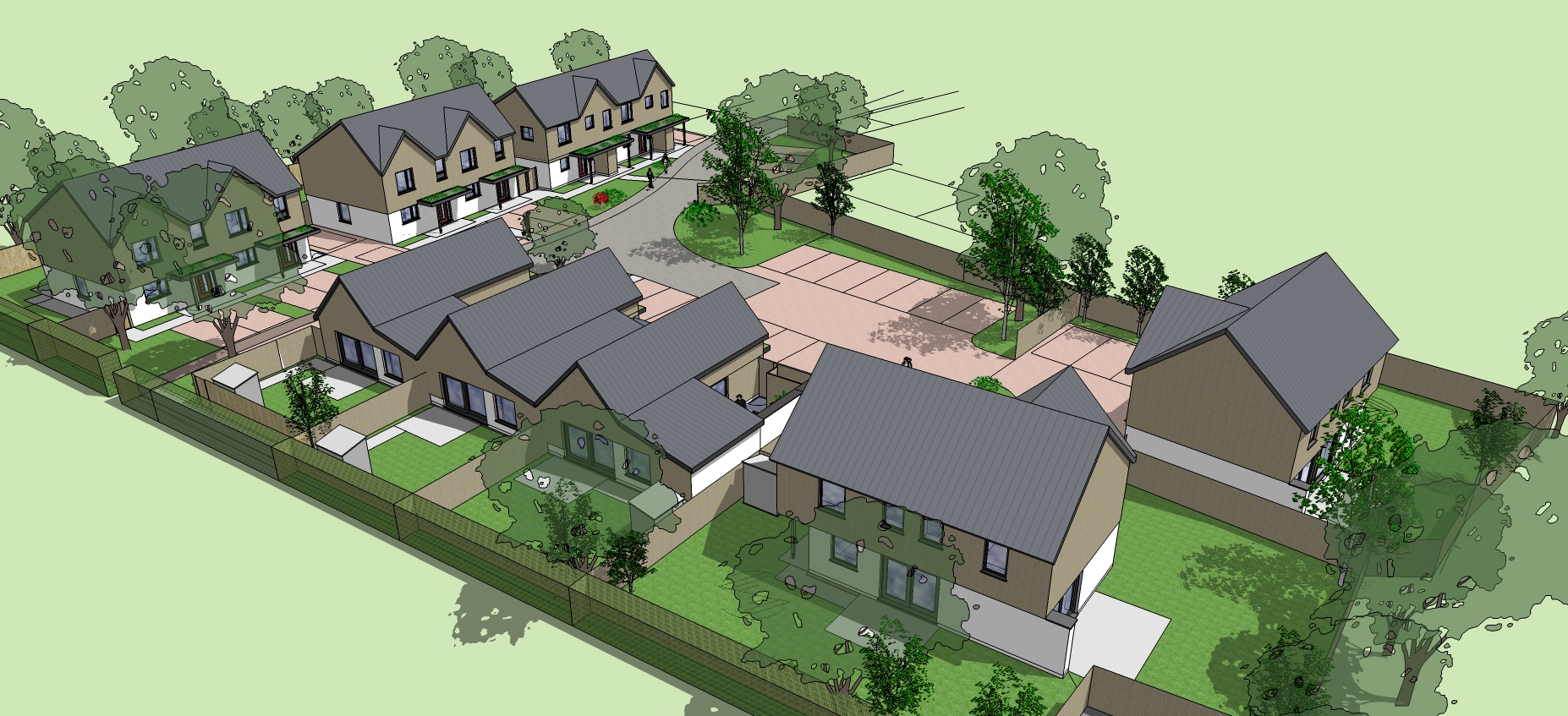 The exciting Innovation was to build two different build methodologies on the same site for true comparisons. Some were designed to Passive House (Passivhaus) principles and the others to Nett zero carbon.