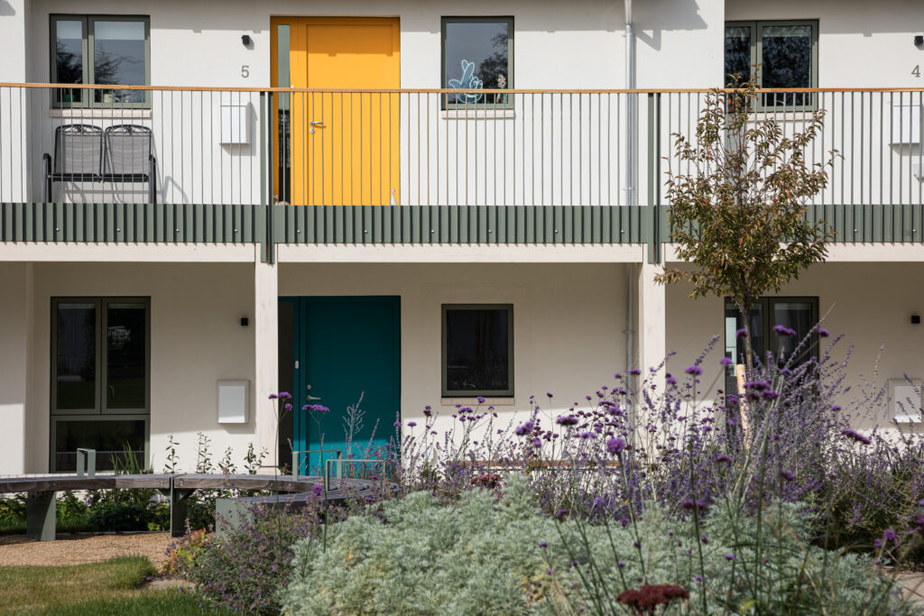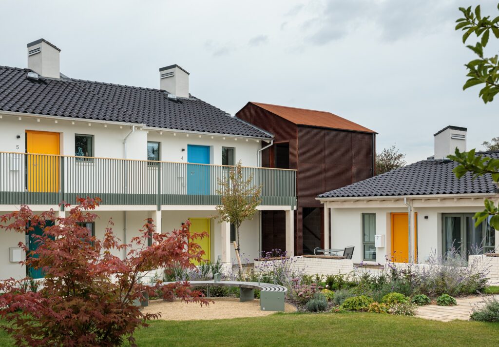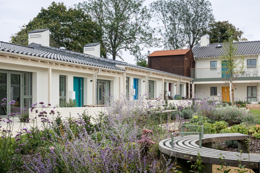 The 15 energy-efficient, one-bedroom homes, suitable for couples or single residents, are arranged as five bungalows and two apartment buildings. The scheme also includes a new office for the charity, adjacent to the homes, which accommodates up to four staff and has been futureproofed for conversion into a one-bedroom bungalow should needs change.