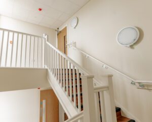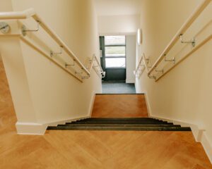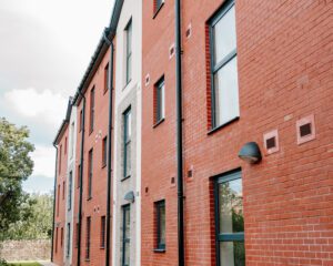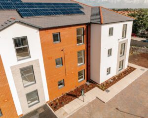 Each apartment includes low-carbon technologies, such as Air Source Heat Pumps (ASHP), Mechanical Ventilation Heat Recovery (MVHR) systems, and Photovoltaic (PV) panels. These features reduce energy use and lower running costs for residents.