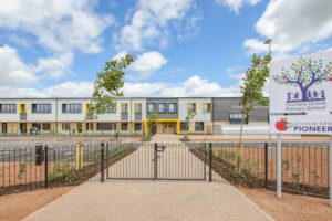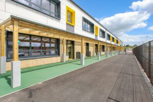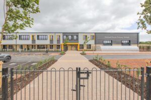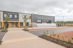 Orchard Grove Primary School is a new two-storey building serving 420 pupils and an integrated nursery. Located within the growing community of Comeytrowe, Taunton, it is Somerset’s first net-zero operational carbon school, approved in 2022 and opened in September 2023.