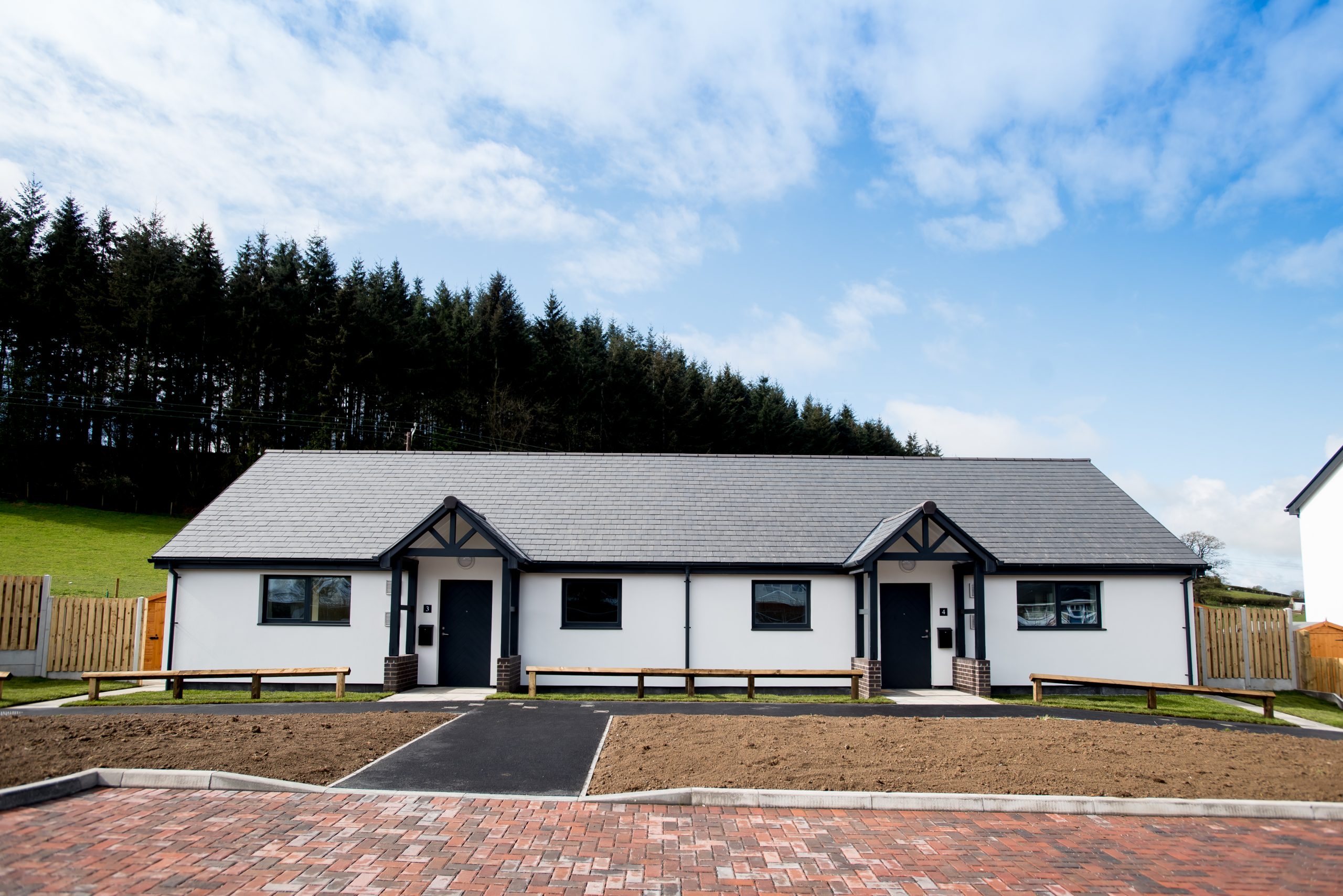 Located in the centre of the popular rural village of Sarn, the 628m2 development comprises two bedroom bungalows and two & three-bedroom homes. Each is designed to offer affordable, environmentally sustainable accommodation for those on the Common Housing Register. The building palette of healthy and ecological timber materials forms a sustainable system for long-term efficiency that meets Passivhaus standards.