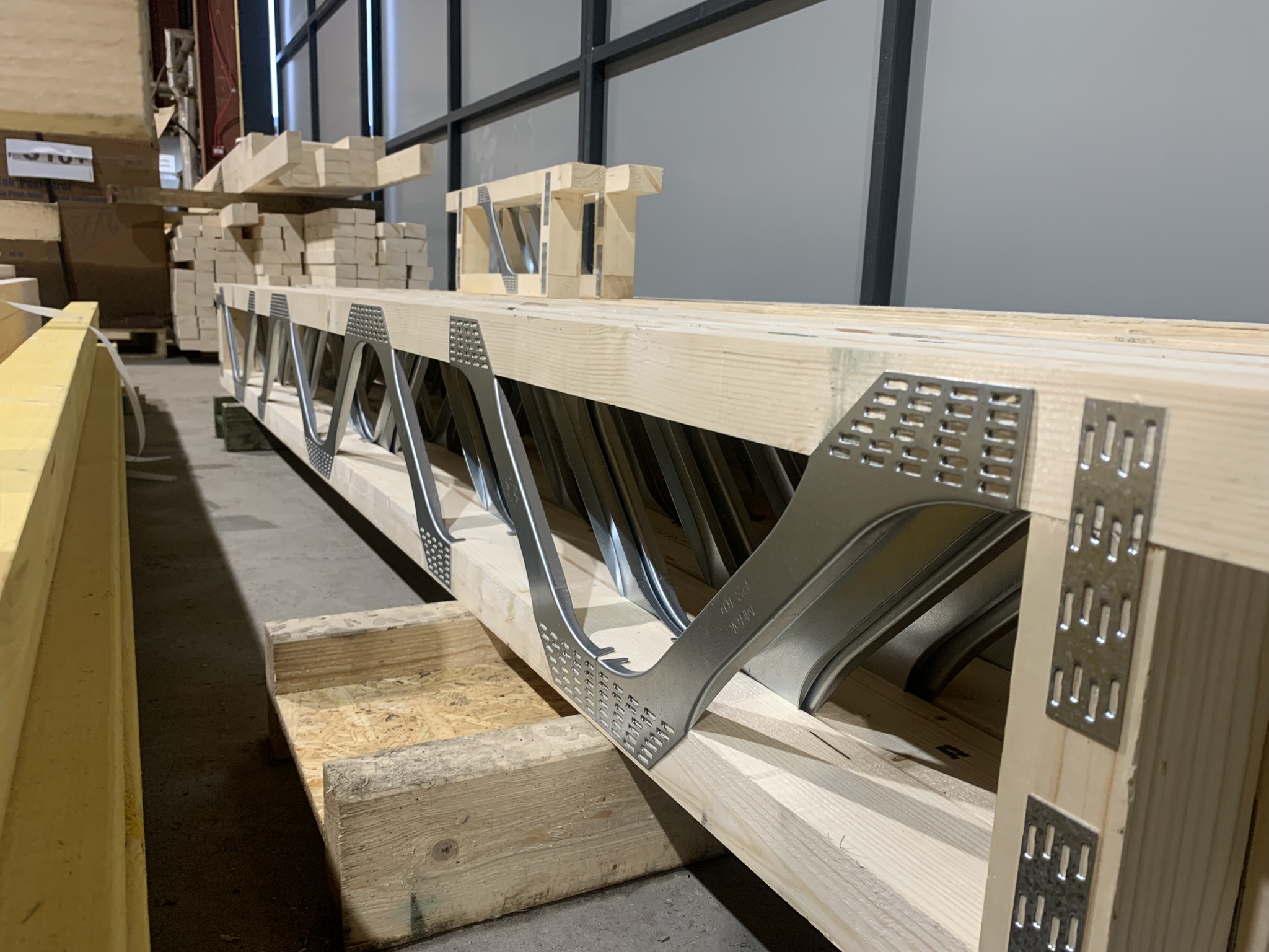 Metal web or Posi joist systems are a combination of timber chords and pressed metal webs which together form an ‘open-web’ joist. Their open web design allows for the installation of services such as pipework, cabling, mechanical heat recovery systems and other services to be passed through the metal webs without the need for notching or drilling and typically span greater distances than I-joists.